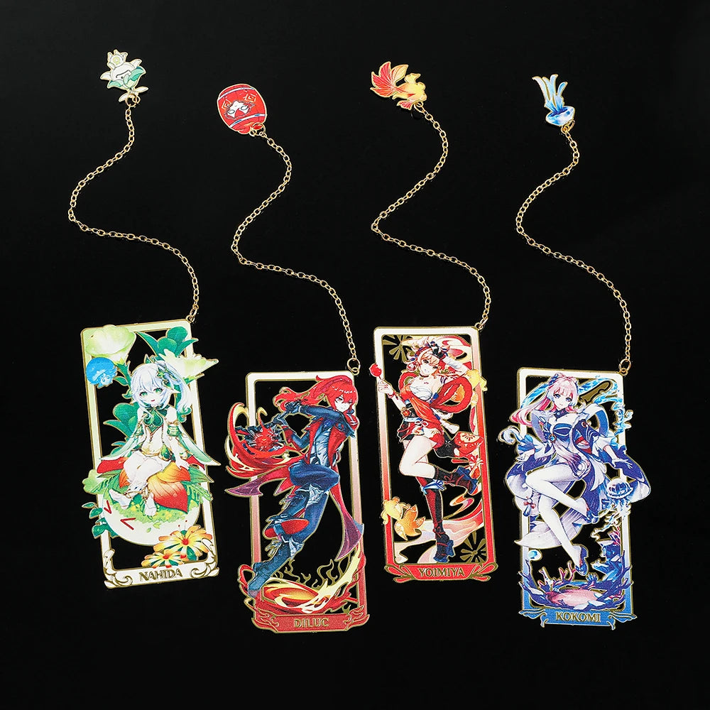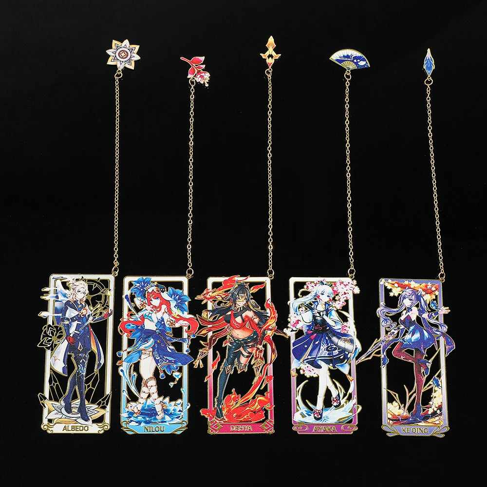 26 Styles Delicate Genshin Impacts Figure Creative Metal Bookmarks for Books Lover Gifts Game Fans Collection for Friends